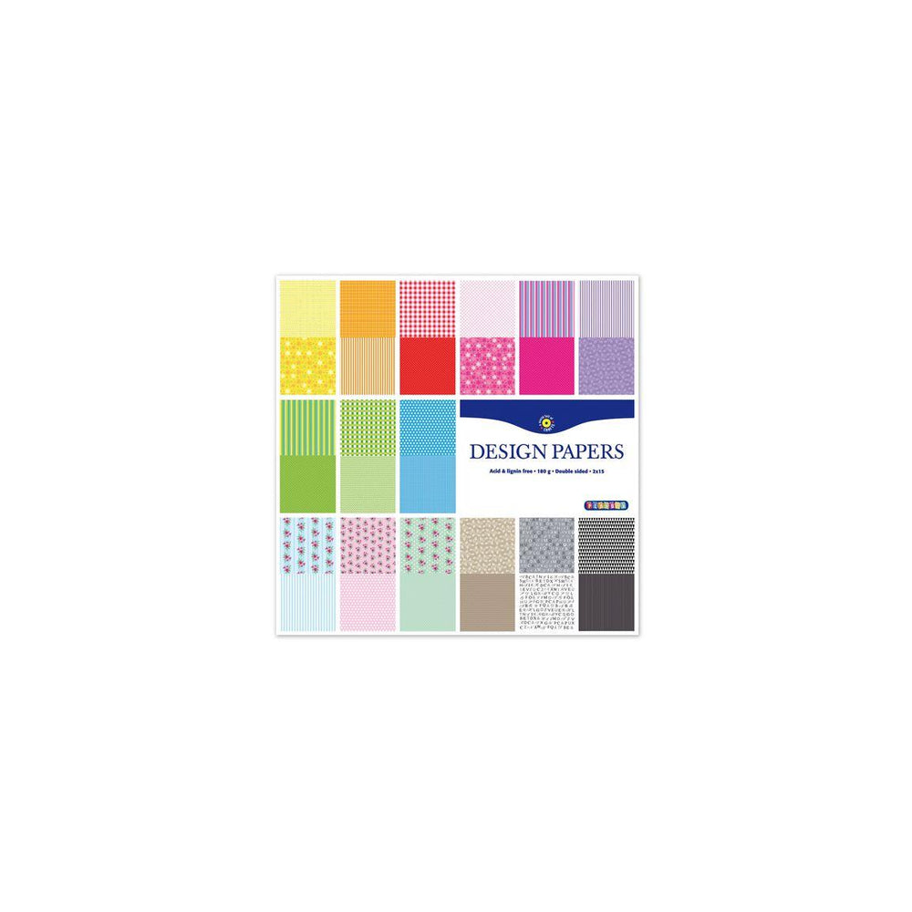 Design pad with patterned sheets in matching pretty colours. The sturdy paper makes it suitable for designing greeting cards, for example, and it is perfect for painting and writing on. - Quantity: 2x15 pages with 30 sheets with different designs on both sides - Sheet dimensions: 305x305 mm - Material: Paper