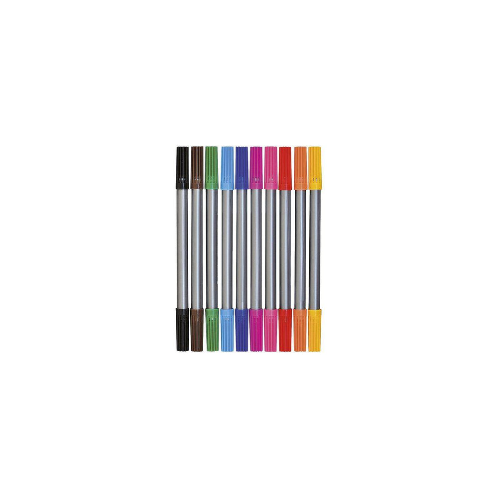 Fibre-tip pens in different colours with a narrow tip at one end and a thick tip at the other. This makes it easier to colour both small details and larger areas without any problems. You can draw freehand, colour in a colouring book or fill in a detailed mandala picture. Water-based ink with a tip that cannot be pressed in. - Qty: 10/pc - Length: 20 cm - Width: 11.5 cm - Depth: 1.2 cm - Pen size: Length: 17 cm, Ø 1 cm - Material: Plastic, watercolours - Colour: 10 different colours
