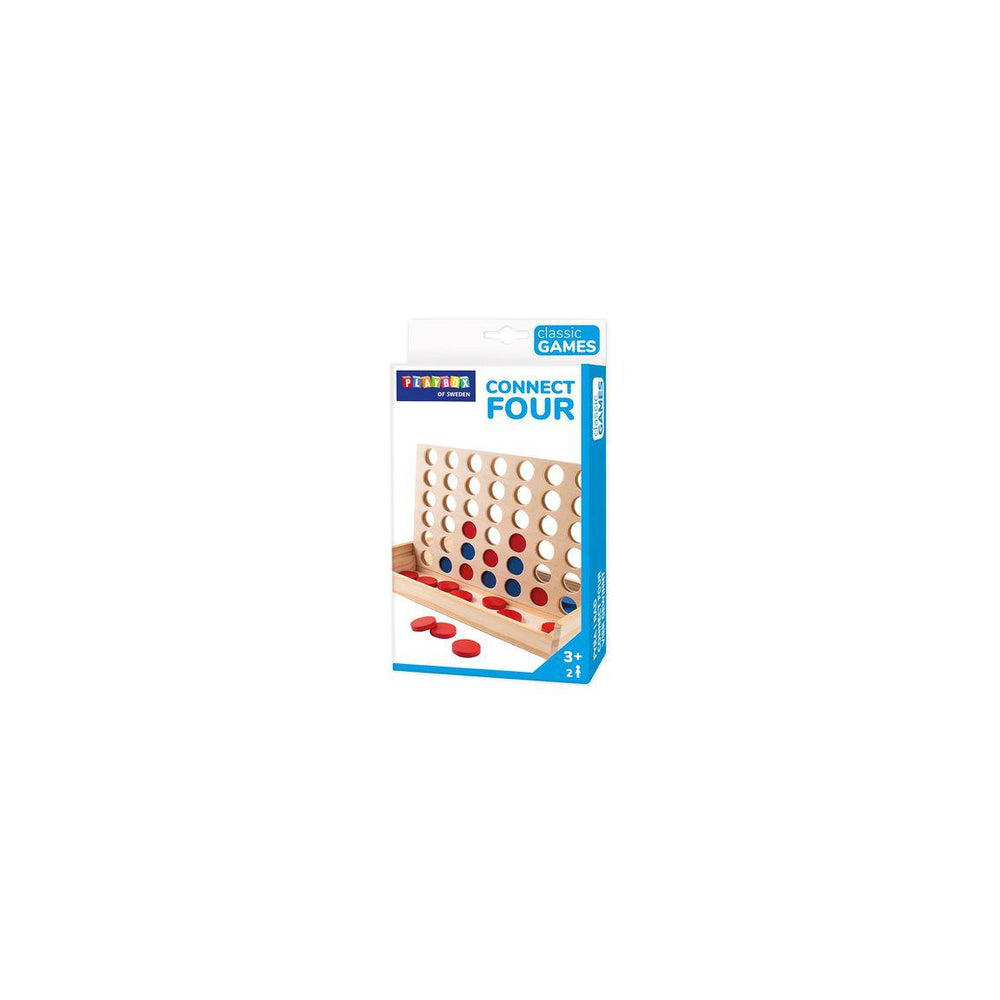 Classic four in a row in wood. Challenge a friend to see who can get four in a row first without being stopped. Fun game suitable for all ages. 1 game board that can be divided into two parts with 42 tiles in two colours, 21 in blue and 21 in red - Dimensions game board: 24x16x3.5 cm - Dimensions tiles: Ø26.6 mm, thickness 5 mm - Material: FSC-certified plywood - PVC-free - FSC: BV-COC-171459 Warning. Not suitable for children under 3 years
