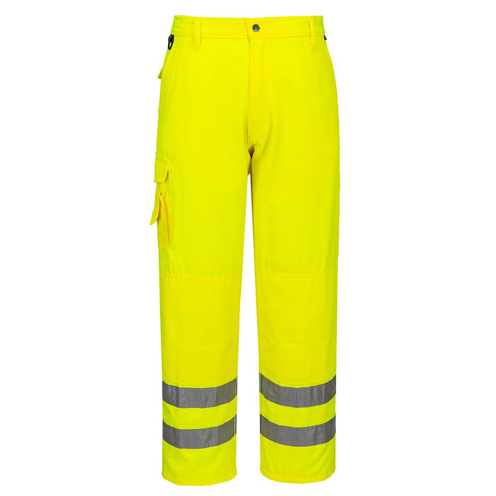 Conforming to the latest EN ISO 20471 standard, these modern trousers feature a combat thigh pocket with mobile phone pocket, kneepad pockets and back waist elastic for superior wearer comfort.