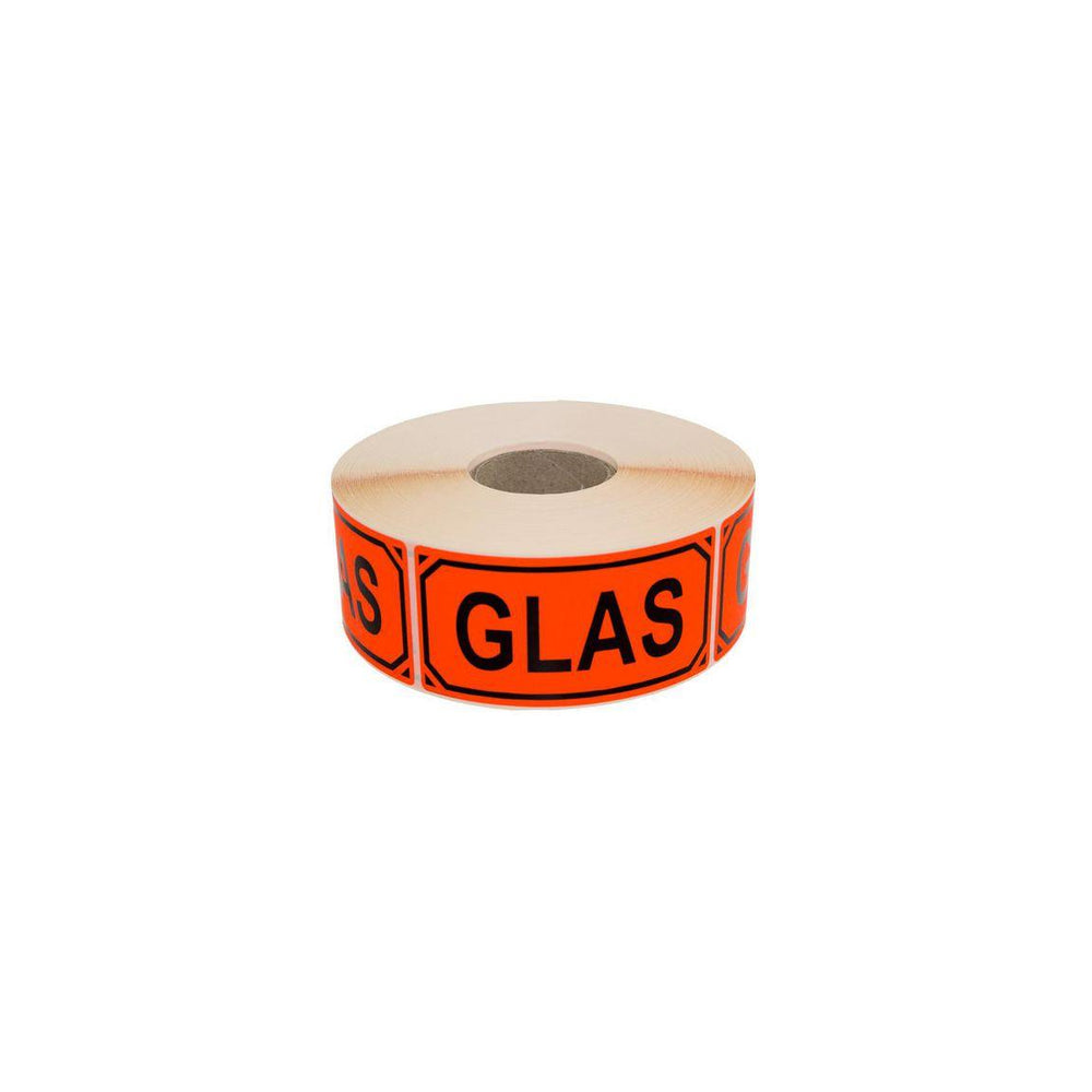 Label your boxes, bags, etc. with this clear label on a roll for careful handling of goods! Flowing self-adhesive label with black print: 'Glass' Format 100x50mm, 1000 labels per roll - Text: GLASS - Format 100x50mm - 1000 labels per roll