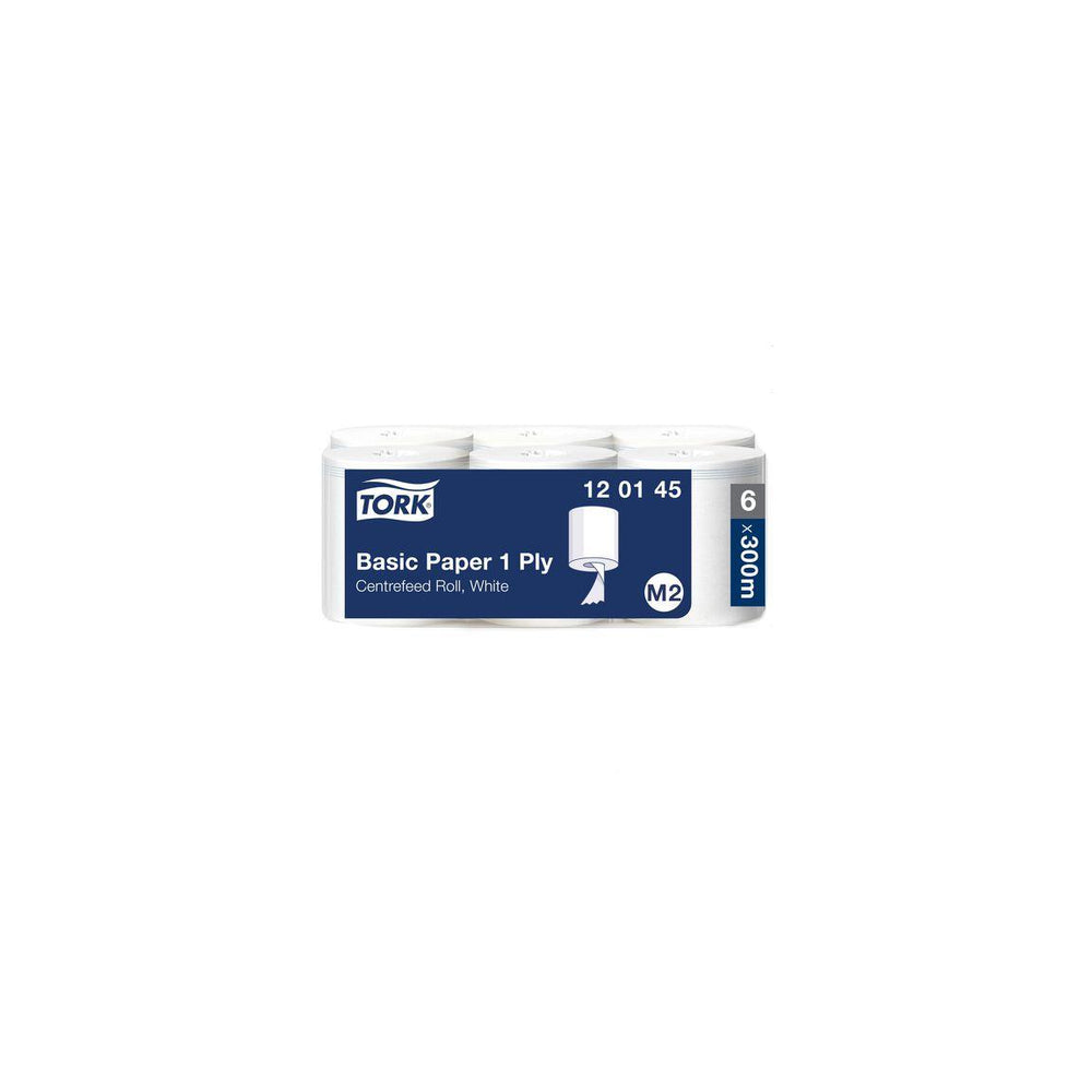 Tork Basic paper is ideal for simple tasks and for drying hands. Tork Basic Paper 1-ply is ideal for light wiping, hand drying and when price is an important factor. The paper fits in the Tork Dispenser Centre Feed - a versatile, high-capacity solution for work environments where it is necessary to wipe both hands and surfaces. Unlimited dispensing, allowing the user to take as much as needed. Easy to use with only one hand - 1-ply, white - Universal quality - System: M2 centre-fed rolls - Roll length: 300m - Roll width: 21.5cm - Roll diameter: 19cm - Material: recycled and virgin fibres - FSC-labelled - Food approved - EU Ecolabel: licence number SE/004/001