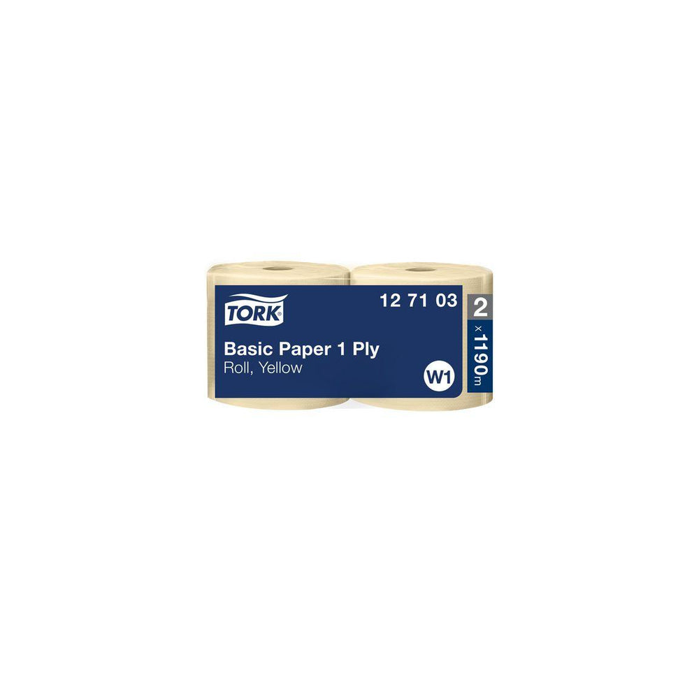 Durable and absorbent for wiping hands and surfaces. Keep your workplace clean and fresh with this all-round Tork Basic Paper. The affordable wiping paper is durable and absorbent enough to wipe both hands and surfaces, making it cost-effective. For additional reliability and efficiency - use this 1-ply industrial paper roll with Tork wall or floor stands. Refilling is easy and the paper towels can be torn off with one hand, making it easier for staff and more hygienic. Compatible with Tork W1 dispensers - 1-ply, yellow - Universal quality - Size of roll: L 1190m, W 23.5cm - Sleeve inner diameter: 7.1cm - Material: 100% recycled fibre - FSC-labelled - Food approved - EU Ecolabel: licence number SE/004/001