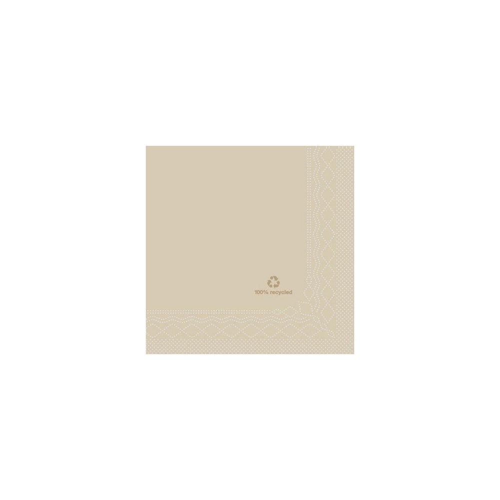 Durable and good napkin! Great for table settings or to take on a picnic! High quality 2-ply natural brown napkin (Advanced). Made from 100% recycled material, no bleaches or added dyes. Pre-printed with the text "100% recycled" to reinforce the environmental message of the napkin - Length, unfolded: 33 cm - Width, unfolded: 32.5 cm - Length, weight: 16.5 cm - Width, weight: 16.3 cm - Ply: 2 - Print: Yes - Decoration: Yes - Colour: Natural - EU Ecolabel licence number: SE/004/001