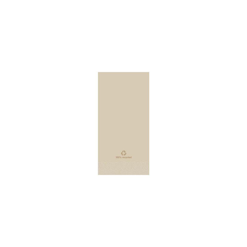 Durable and good napkin! Great for table settings or to take on a picnic! High quality 2-ply natural brown napkin (Advanced). Made from 100% recycled material, no bleaches or added dyes. Environmental print on the napkin to show you care. 39x39 cm, 1/8 weight - Length, unfolded: 39 cm - Width, unfolded: 39 cm - Length, folded: 19.5 cm - Width, folded: 9.8 cm - Ply: 2 - Print: No - Decoration: Yes - Colour: Natural - EU Ecolabel licence number: SE/004/001