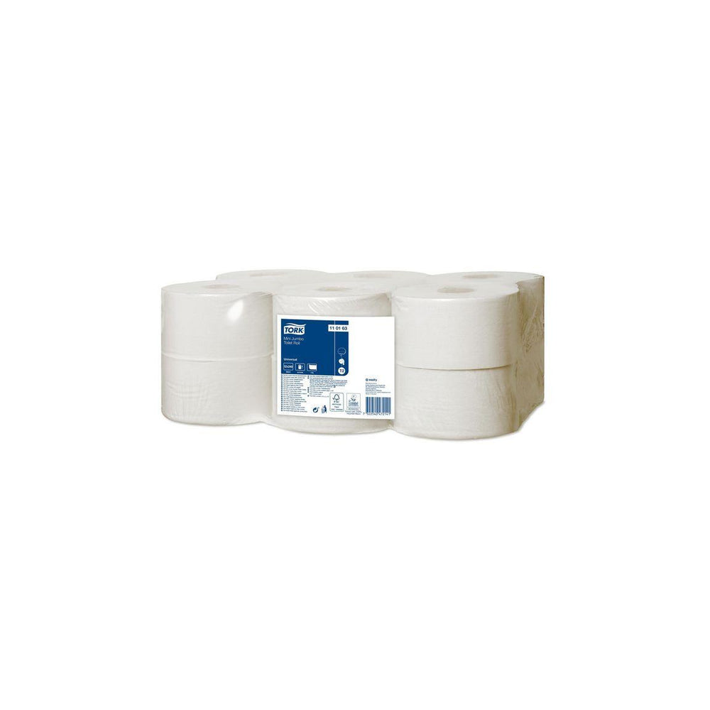 The Tork Universal T2 Mini jumbo roll has a soft feel for maximum comfort. The Tork Universal T2 Mini jumbo roll of toilet paper is eco-labelled with the EU Ecolabel, an excellent choice for the environment. This toilet paper is soft and specially designed to provide gentle care and outstanding comfort. 1-ply paper, cost-effective and practical. High capacity - reduced maintenance and reduced risk of paper shortage - 1-ply, white - Universal quality - Number of sheets: 1200 - Roll length: 240m - Roll width: 9.4cm - Roll diameter: 18.8cm - Material: 100% recycled fibre - FSC-labelled - EU Ecolabel: licence number SE/004/001