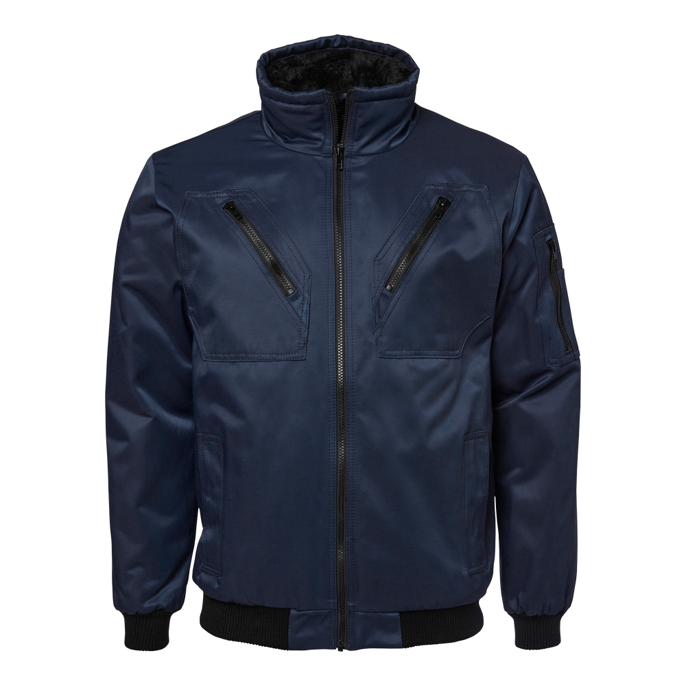 Lined Pilot Jacket with multiple pockets designed for cold environments.