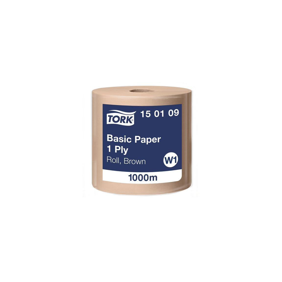 Durable and absorbent for wiping hands and surfaces. When you need a cost-effective and efficient solution to clean your busy workplace - choose Tork Basic Paper. This 1-ply industrial paper roll is durable and absorbent enough to wipe both surfaces and hands, making it an affordable option. With Tork Floor or Wall Racks, use will be safe and reliable. Their high capacity contributes to fewer refills, and easy refill and tear-off features allow staff to grab the paper they need with one hand. Compatible with Tork W1 dispensers - 1-ply, brown - Universal quality - Roll size: L 1000 m, W 33cm - Sleeve inner diameter: 7.1cm - Material: 100% recycled fibre - FSC labelled - EU Ecolabel: licence number SE/004/001