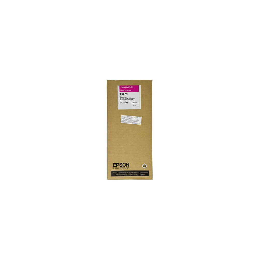 The Epson T5963 ink cartridge contains colour-fast ink, which keeps prints in better condition for longer. Choose the Epson T5963 ink cartridge when refilling your printer for premium quality and precision. This cartridge contains 350ml of vivid magenta ink - Colour: vivid magenta - Single pack - Fade-resistant - Designed for printing photos - Ideal for small home or office storage - Volume: 350ml - Compatible with: Stylus Pro 7700, 7900, 9700, 9900