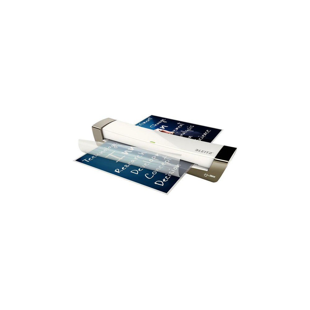 iLam Office laminator in a sleek and stylish design with fast heat-up time. For safe lamination and best results, take the time to read the machine manual before you start laminating. A3 laminator in slim design with a heating time of only 1 minute. Suitable for 80-125 microns. We recommend using cleaning sheets regularly or after each use to prolong the life of the machine - Laminate starter kit included - For hot lamination - For photos: Yes - Laminates all documents up to A3 (330 mm) - Heating time: 60 sec - Uses 75 - 125 micron pockets - Fast lamination time - Auto shut off after 30 seconds to standby mode - Heating indicator - Colour: Silver - Size: 128 x 76 x 465 - Warranty: 2 years, GS / TUV / CE certified - Create your own, customize or print ready-made signs: https://signs.leitz.com/sv/se/7023/signmaker
