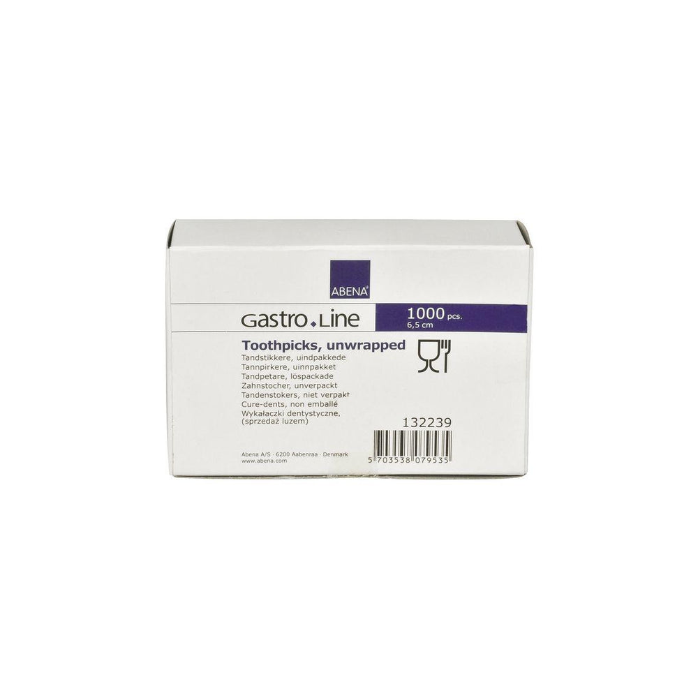 Toothpick with tip at both ends. Toothpicks, gastro-line. Made of birch wood. The toothpick is round and pointed at both ends - Length: 6.5 cm - Colour: Wood - Loosely packed - 1000 pcs per pack