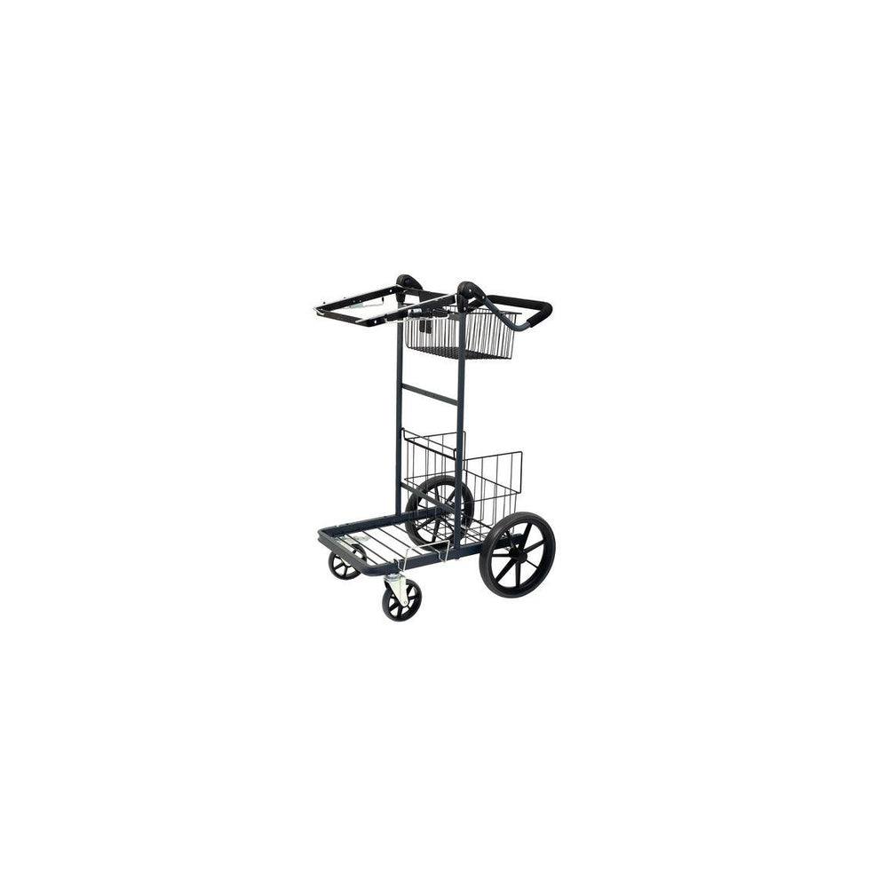 Stabil basvagn som har generöst med plats för material. Plats för två stativ, krokar och med reglerbart handtag. - Mått hjul: 310 mm stora bakhjul och 150 mm framhjul. - Inkluderar en 125L säckhållare - Mått: 69x49x116cm