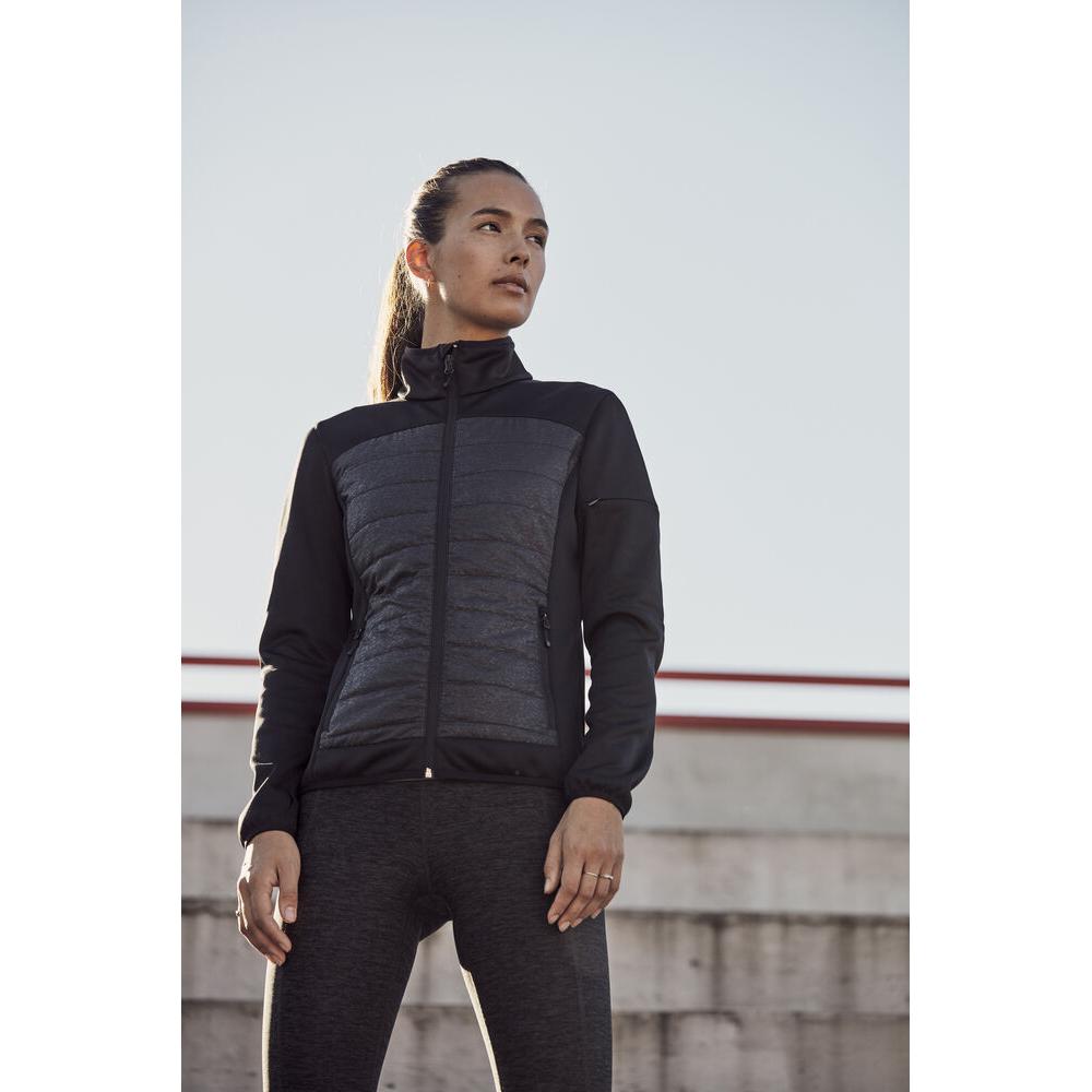 En lättvadderad jacka med reflextryck. Jackan är utrustad med följande funktioner: