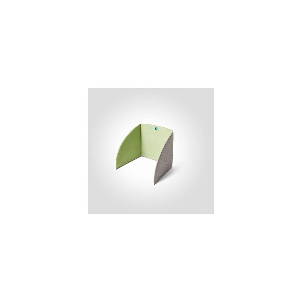 Bordsskärm som skapar avskildhet och bidrar till en lugnare miljö. Bordsskärmen är avskärmande och ljuddämpande, med en kärna av stabil, återvinningsbar kanalplast. Den är utvändigt klädd med ett grått, lätt melerat tyg med tuftad look. Invändigt är den klädd med alcantara-liknande tyg och finns i fyra färger. Öljetten gör att du kan hänga upp skärmen då den inte används. - Hopfällbar - Tyg utvändigt 80% polyester, 20% viskos - Invändigt tyg 90% polyester, 10% bomull - Mått: 80x55x55 cm