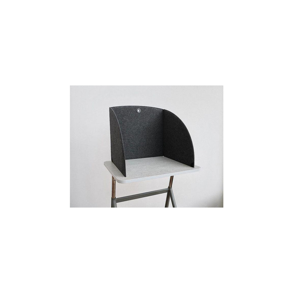 En hållbar, nätt bordsskärm som är hopfällbar med kardborrefärste. Bordsskärmen är ljuddämpande och avskiljande när eleven behöver avskildhet för ökat fokus på skolarbetet. Öljetten gör att den kan hängas upp då den inte används. - Material: Pressad nålfilt av 100% polyester (varav 50% är av återvunnen PET) - Mått: 55x51,7x53 cm - Färg: Grå