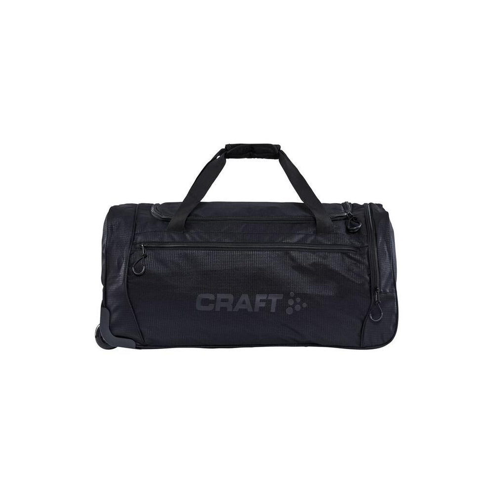 Modern medelstor rullväska med slitstark polyester på utsidan och förstärkt PU-behandlad insida. Volym: 60 L.
